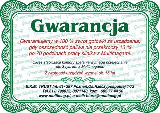 Jesteśmy pewni, że MULTIMAG jest wynalazkiem bardzo dopracowanym technicznie i nie sposób uzyskać wyższych efektów za pomocą magnetyzerów innych renomowanych firm światowych. Wiedząc o tym naukowcy, rzeczoznawcy motoryzacyjni i sportowcy -testujący w przeszłości wiele różnych urządzeń przeznaczonych do magnetyzacji paliw, występujących na rynku pod nazwami; jonizatory, magnetyzery, aktywatory lub modyfikatory paliwa. Poza wszelka konkurencją są tzw. tanie magnetyzery, reklamowane w internecie, szczególnie w portalu Allegro lub na giełdach samochodowych. Użytkownicy tych urządzeń, którzy ulegli pokusie niskich cen, przekonali się szybko o ich rzeczywistej ''skuteczności''. Żałują, że kierowali się wyłącznie niską ceną magnetyzerów i zapewnieniom producentów , iż wszystkie magnetyzery działają na tej samej zasadzie i dlatego zapewniają podobne efekty. Teraz twierdzą, że nie warto jednak kupować urządzeń bez badań i opinii specjalistycznych ośrodków, uczelni technicznych, rzeczoznawców i autoryzowanych serwisów.